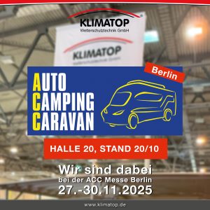 Wir sind vom 27. bis zum 30. November mit unserem Stand auf der ACC Auto-Camping-Caravan Messe in Berlin! HALLE 20 – STAND 20/10.