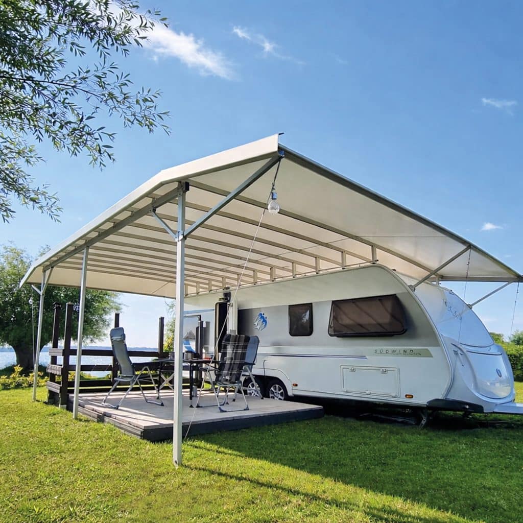 Sollte die Platzleitung Gebühren für die Anwesenheit unseres Servicefahrzeugs oder unseres Montagepersonals erheben, sind diese Kosten vom Schutzdach/Vorzeltkäufer zu tragen.